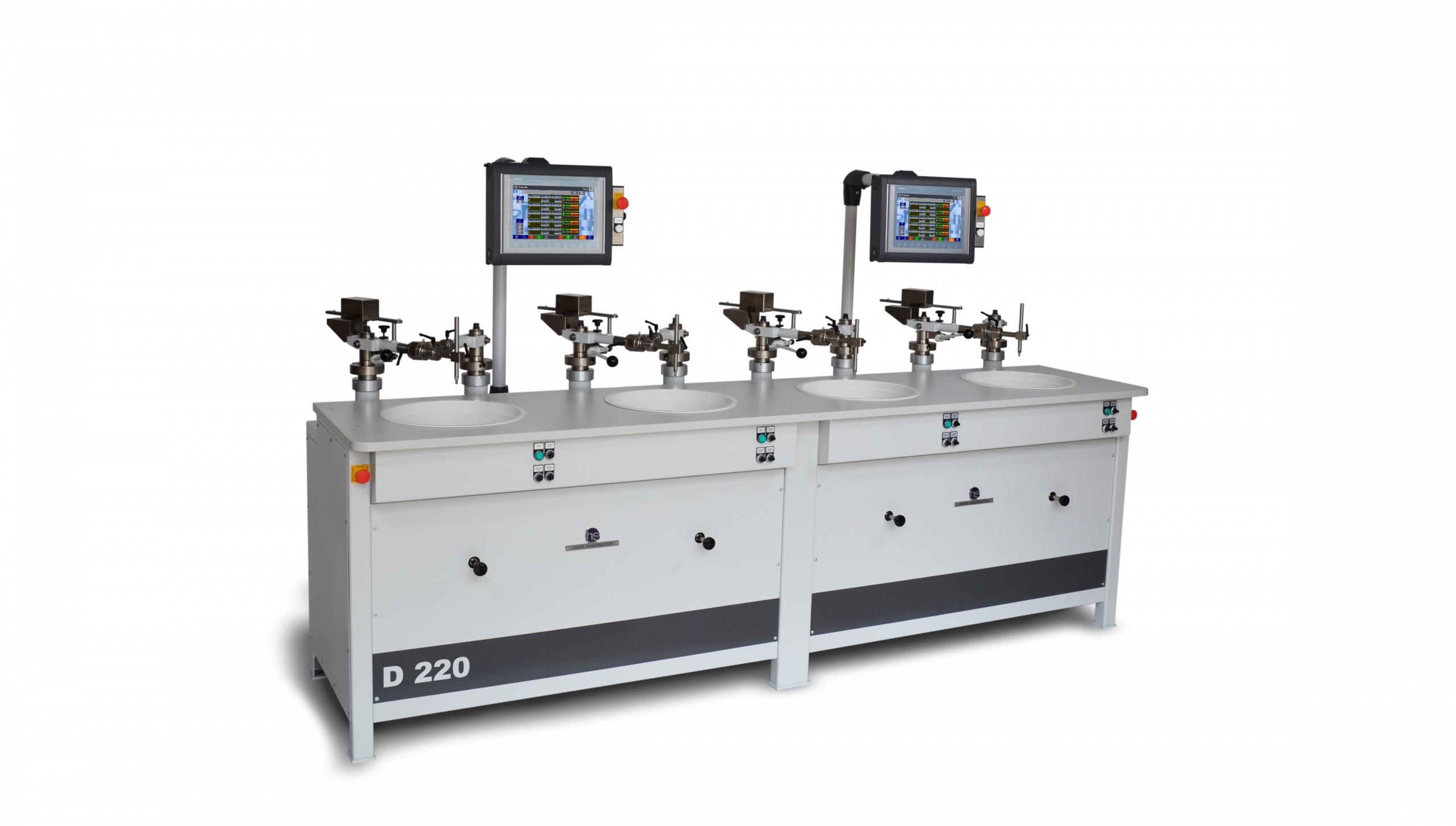 Unsere D – Modelle sind ein- oder mehrspindlige Läpp- und Poliermaschinen mit Doppelexzenter und Doppelhebel in Schiebegewichts- oder Pneumatik-Ausführung. Sie sind ideal für die hochgenaue Bearbeitung von planen und sphärischen Flächen.